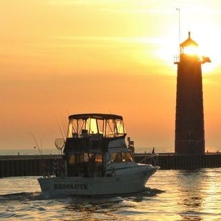 Enjoy 6 hours for up to 6 people aboard The RESOLUTE a 35' Viking Convertible designed for rugged off-shore sport fishing. She's safe, stable, and comfortable and is rigorously inspected and maintained to the highest industry standards. The RESOLUTE is equipped with: All required US Coast Guard Safety Equipment Twin 454 Crusader Engines Heated/Air Conditioned Cabin Private Restroom Facilities Raymarine Radar and GPS Systems Simrad Autopilot ICOM VHF Marine Radio Electric Downriggers Shimano Reels Grandt Custom Trolling Rods The Finest in Lake Michigan Tackle